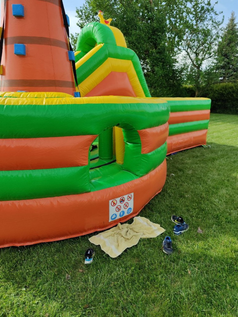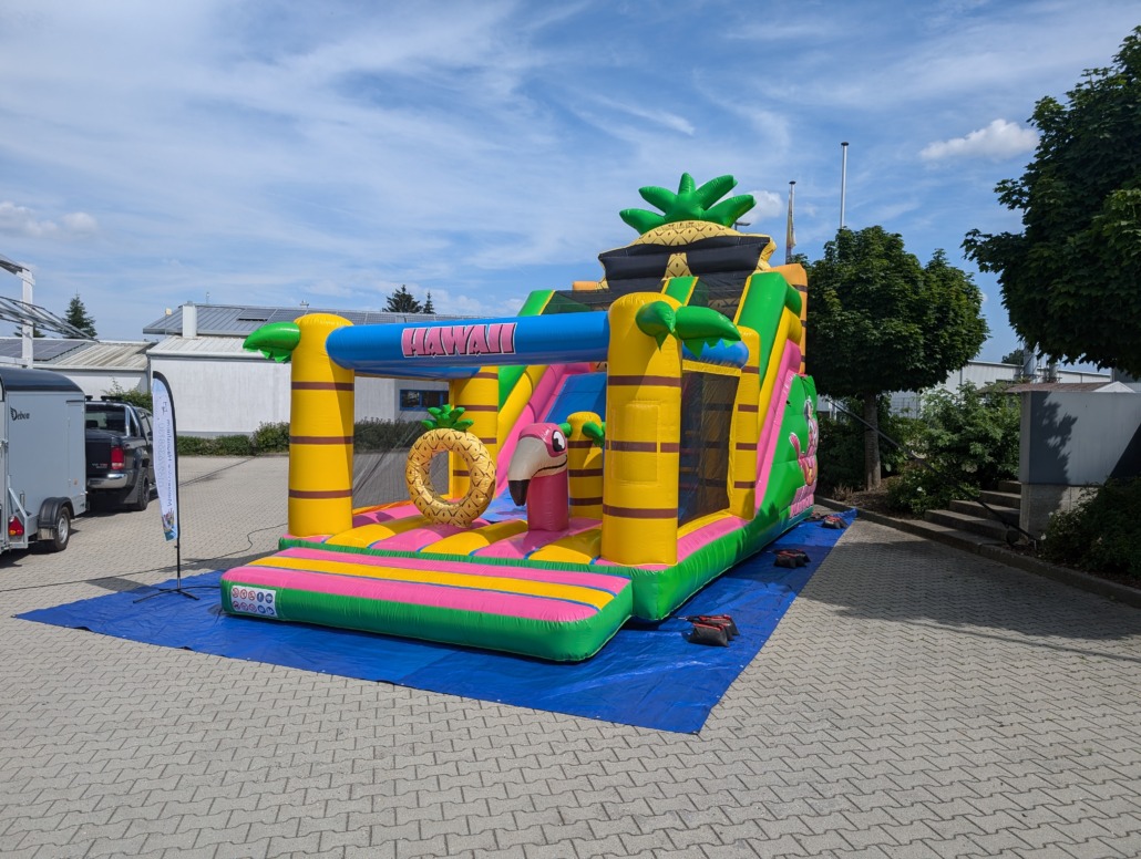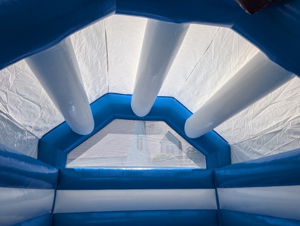 • Komplettes Zubehör im Preis enthalten ( passendes Gebläse, Unterlegplane, Erdanker ggf. Sand/Wassersäcke, Reinigungsmittel)
